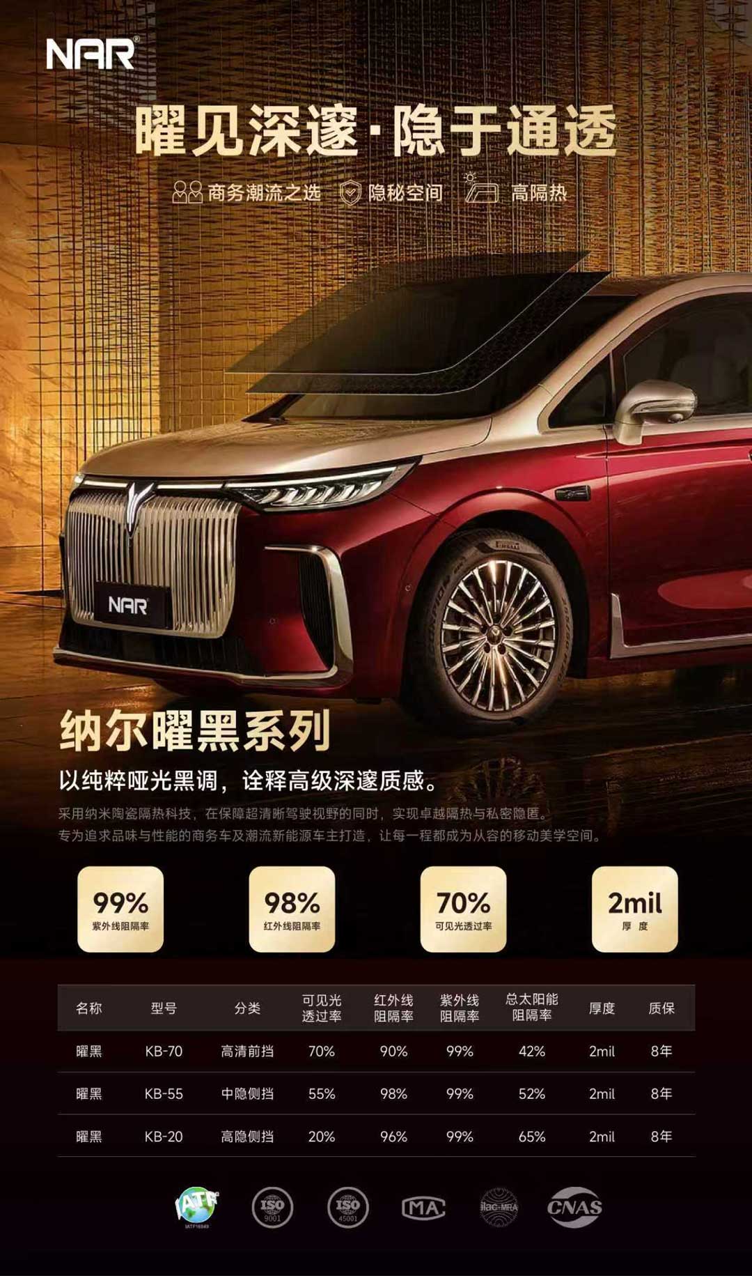 纳尔WF全系列车窗隔热膜